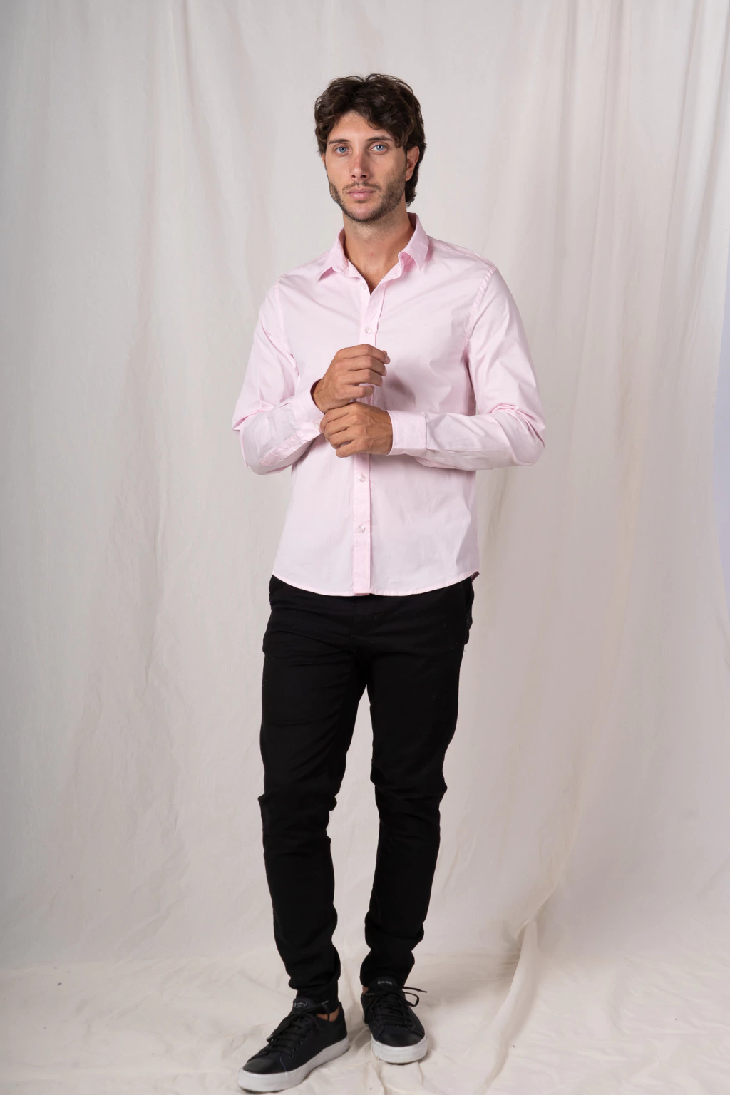 Camisa lisa en color negro, versátil para múltiples ocasiones.